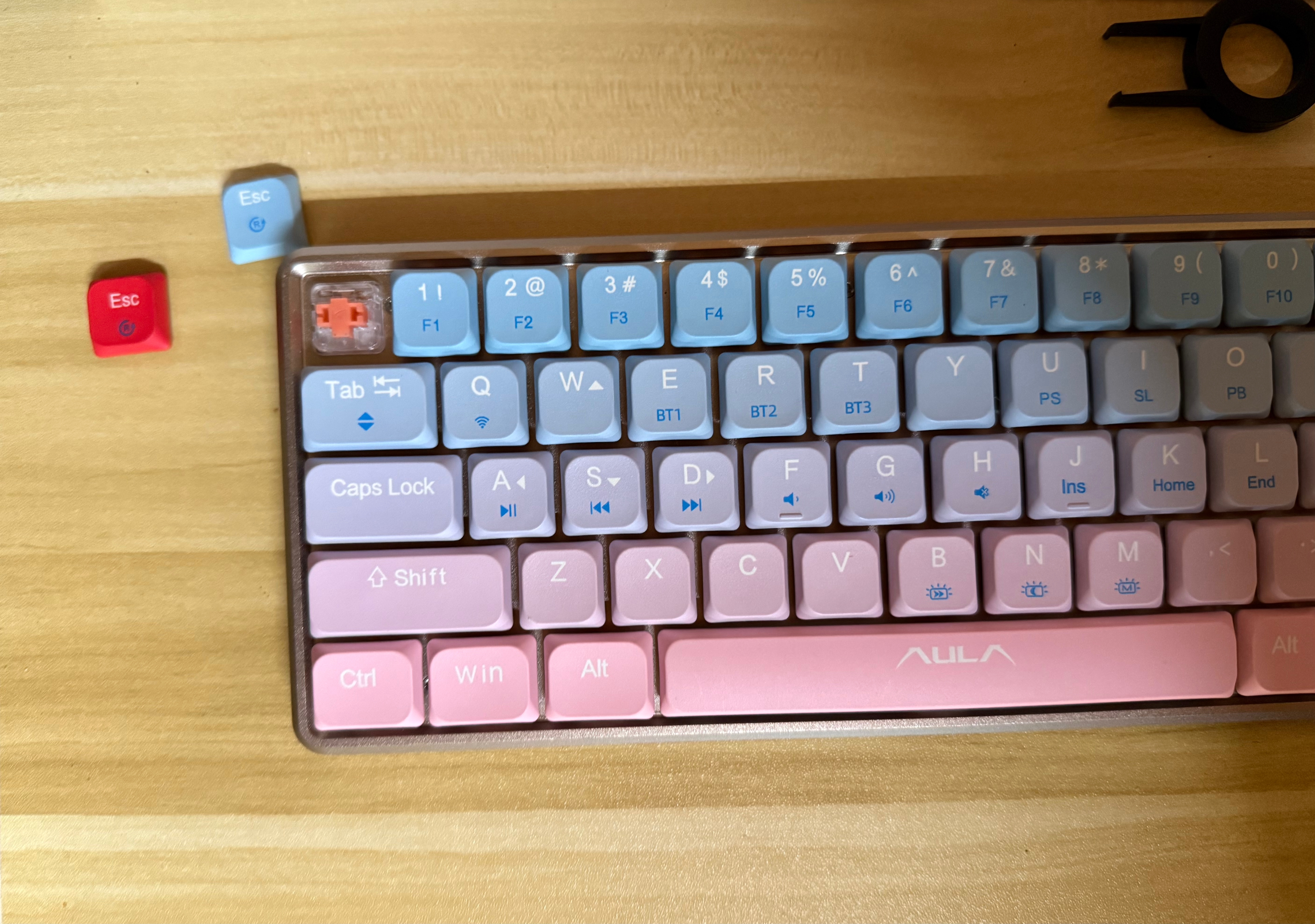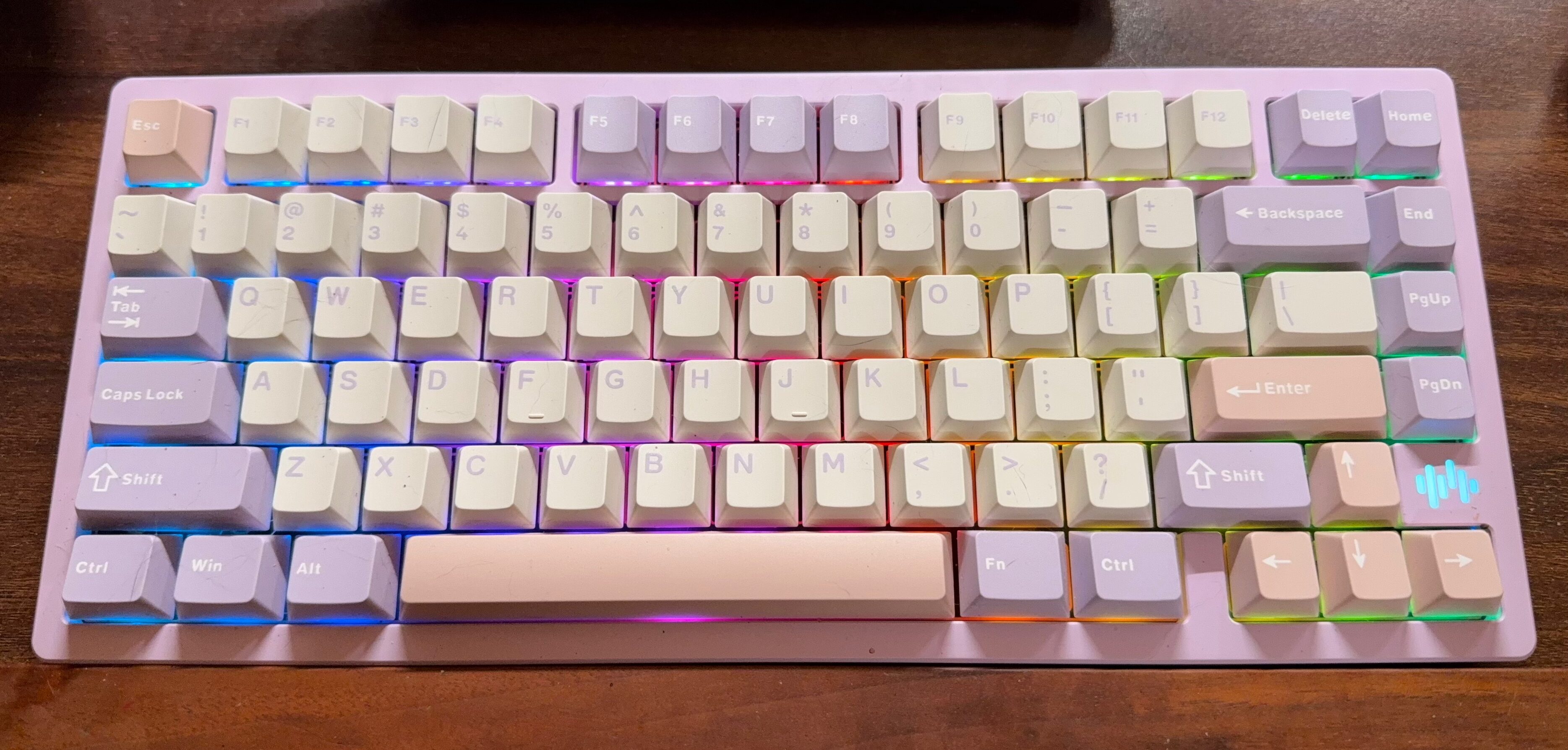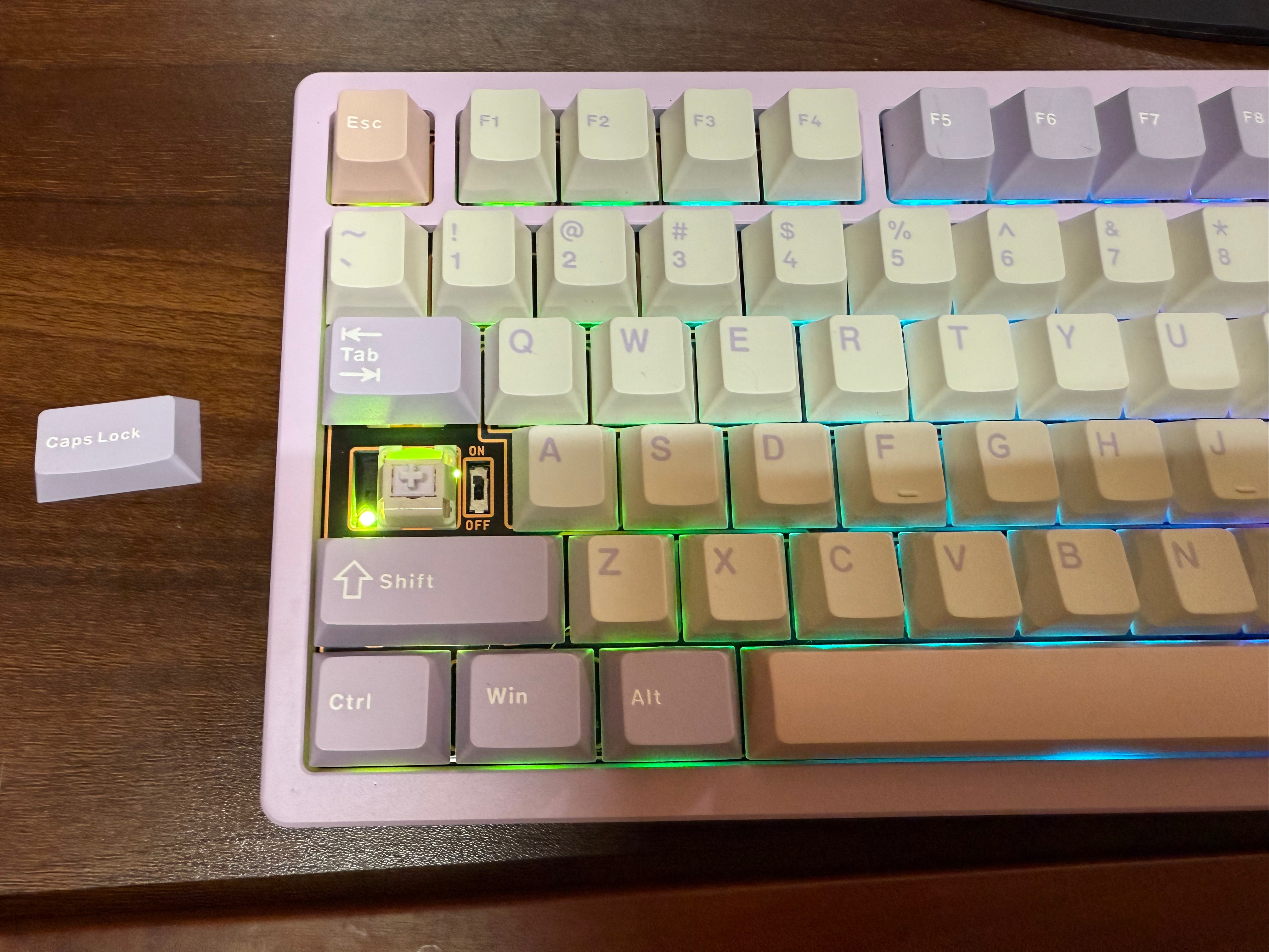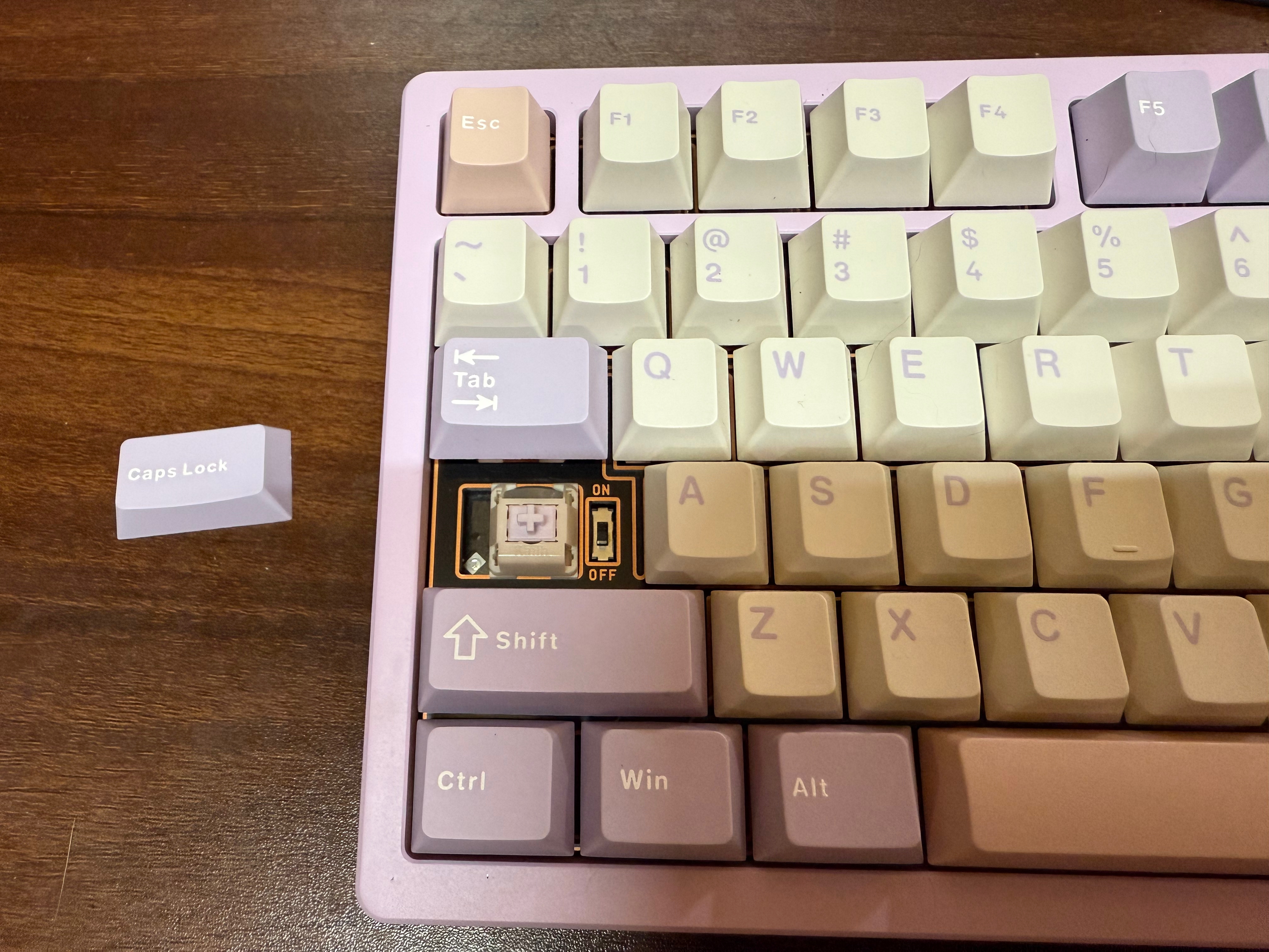 2020年我曾經給它換了一個紫粉色(ABS-粉- PINK / Raspberry)的太豪鍵帽,不過再後來就沒有很多使用它的時候了。