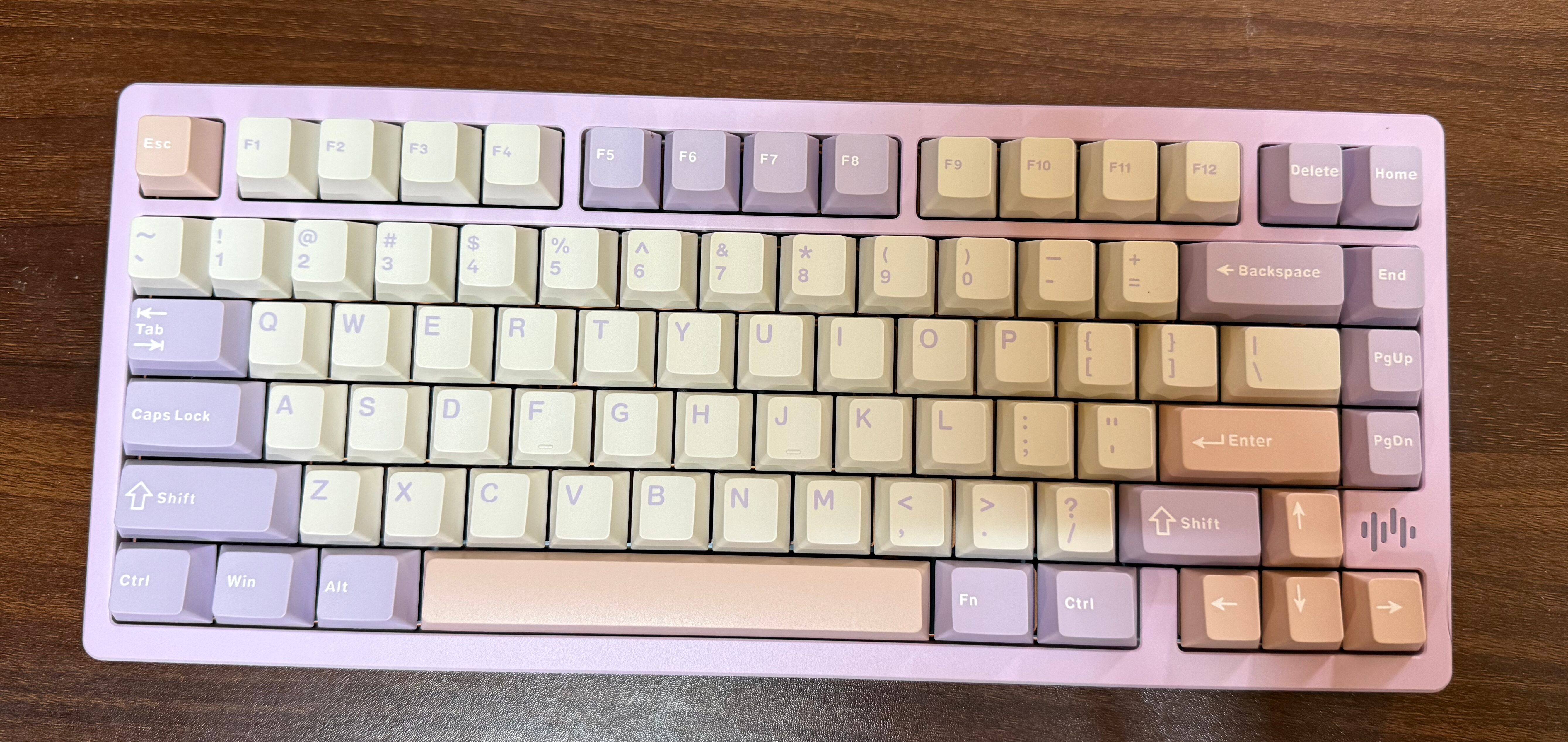 喜好是主觀的,對比Raniy75當時賣場有的配色,我更喜歡這個粉紫色,在品質做工都是差不多的水準下(同一家出品、也都是有口碑的產品),我是外觀先決。只是沒想到Wave75的這個木槿紫版本後來停產了,據店家說是因為銷售不好,所以我的審美也可能是冷門的7。