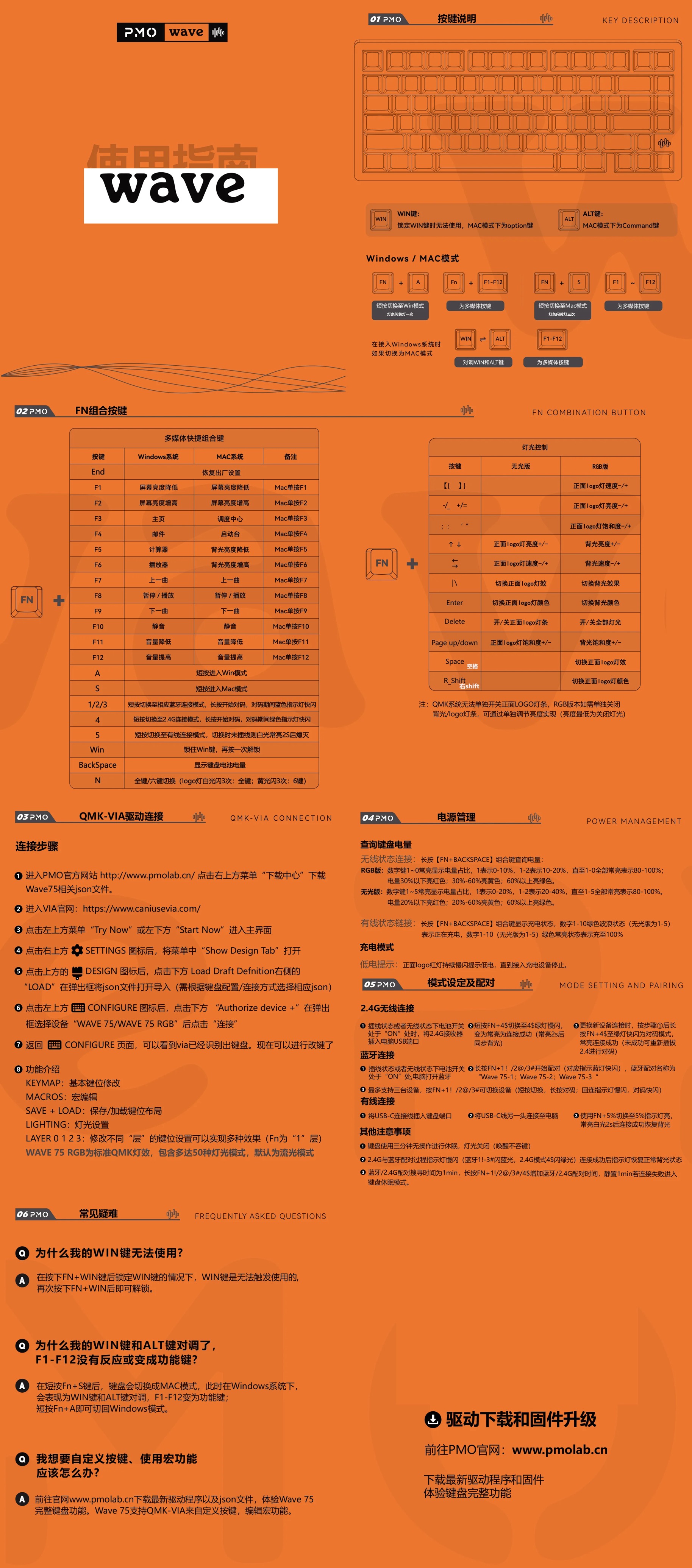 有一兩次遇到藍牙連不上設備裝置,或RGB燈光效果變不回來原來的設定,詢問了客服後,目前用「重置」方式(Fn+End鍵,長按數秒)都能解決。(其實我沒有很仔細看Wave75的說明書檔案,一開始只有看如何用藍牙連結設備和如何查詢剩餘電量而已XD)。